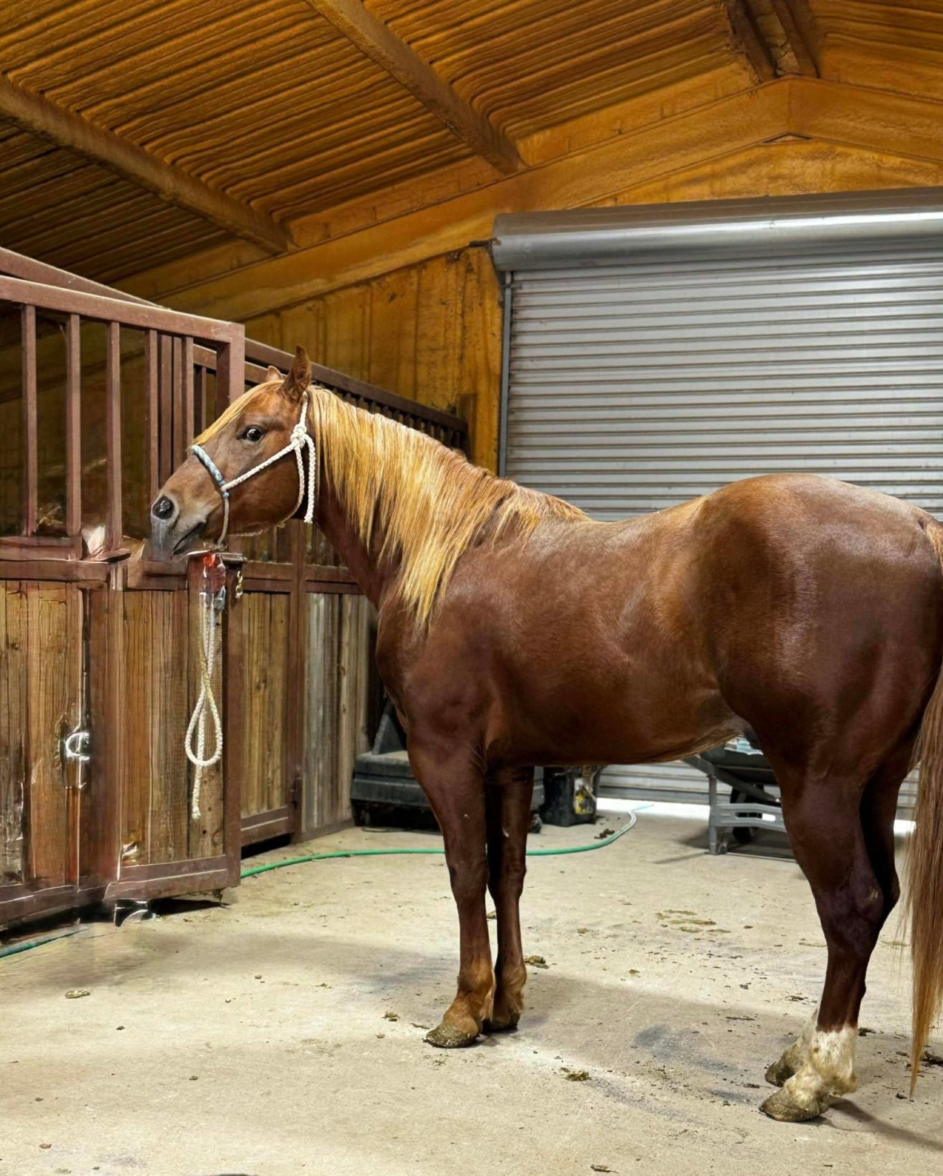 This stallion is approximately 14.3-15hh and in training as a "heel" horse. Videos are available on request. This guy is super gentle, well mannered around outside horses and very responsive with leg pressure. He's not high headed, comes out clean from the box, sound and easy to handle and ride.